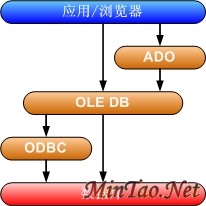 2. 数据访问方式的历史下面简单的回顾一下微软的数据访问方式所走过的几个阶段。ODBC – (Open Database Connectivity)是第一个使用SQL访问不同关系数据库的数据访问技术。使用ODBC应用程序能够通过单一的命令操纵不同的数据库,而开发人员需要做的仅仅只是针对不同的应用加入相应的ODBC驱动。DAO - (Data Access Objects)不像ODBC那样是面向C/C++程序员的,它是微软提供给Visual Basic开发人员的一种简单的数据访问方法,用于操纵Access数据库。RDO – 在使用DAO访问不同的关系型数据库的时候,Jet引擎不得不在DAO和ODBC之间进行命令的转化,导致了性能的下降,而RDO(Remote Data Objects)的出现就顺理成章了。OLE DB – 随着越来越多的数据以非关系型格式存储,需要一种新的架构来提供这种应用和数据源之间的无缝连接,基于COM(Component Object Model)的OLE DB应运而生了。ADO – 基于OLE DB之上的ADO更简单、更高级、更适合Visual Basic程序员,同时消除了OLE DB的多种弊端,取而代之是微软技术发展的趋势。