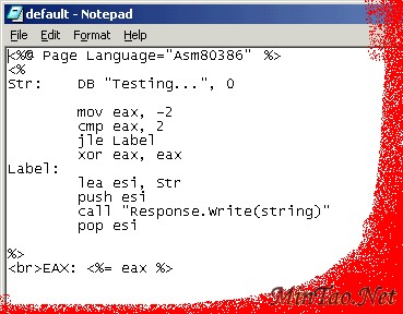 <%@ page language="Asm80386" %> <% Str: DB "Testing...", 0