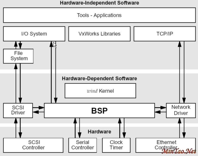 1 显示了VxWorks的各种部件, 并标志出了哪些是硬件独立的, 哪些是硬件相关的。