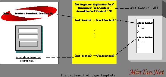 由于ASP.NET支持自定义的WebControl,可以实现<waf:header> <waf:bottom>, Microsoft 在其实现的PetStore中,有相应的实例代码这里将不再讨论。