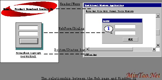 下图将ASP.NET与Windows应用程序对应起来将更易于对ASP.NET设计模式的理解。