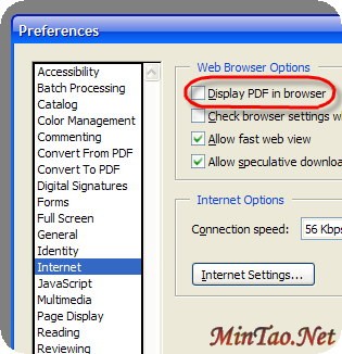 除了打开Internet上的网页,Internet Explorer还能够浏览本地文件夹及文件。如果浏览的是PDF文档或Office文档,有时候你会发现当调用Navigate("xxx.doc")的时候,Adobe Reader/Acrobat或Office等Document Servers会在IE中嵌入自己的一个实例以打开相应的文件,当然有时候也会在独立的Acrobat或Office窗口中打开文件。 在Adobe Reader/Acrobat的属性设置窗口中,我们可以找到“Display PDF in browser”的选项,如果勾上,则Navigate("xxx.pdf")将会以嵌入的方式在IE中浏览PDF文件,否则在独立的Adobe Reader/Acrobat窗口中浏览。但在Office的“选项”对话框中我们找不到这样的设置。