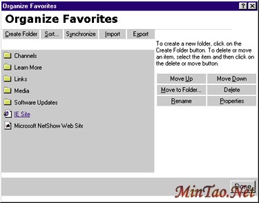 IE 4.0的“整理收藏夹”对话框(原先的设计)