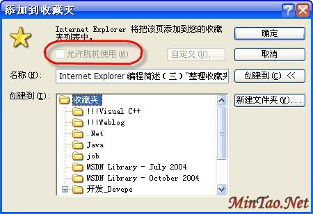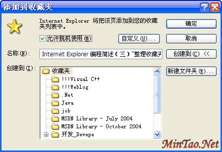 难道我们的希望要破灭吗?我们一方面想像调用“AddFavorite”函数一样的不必手动创建链接,一方面又要模态显示窗口,就像IE那样,还能自定义脱机浏览。