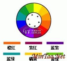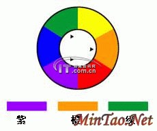 在这个圆环中,相邻的两个原色相混合可以得到另外三个比较重要的颜色(下文将其称为二级原色):红+黄=橙,红+蓝=紫,蓝+黄=绿