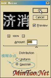 制作出云石斑点纹理:Filter--Noise--Add Noise,参考值:Amount:240;Distribution:Gaussian。如下图操作: