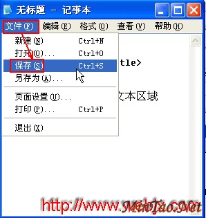 【图-2说明】点击“文件”里的“保存”就可以文件保存了。将文件保存了,就大功告成了! (在硬盘下建立建一个子目录,我们就在E:盘下建立一个 myweb 的子目录,并将我们的网页保存为 myfirst.htm 就可以了。)