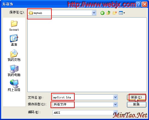 1.刚刚保存了文件了,我们存的网页文件在 e:\myweb\myfirst.htm 。