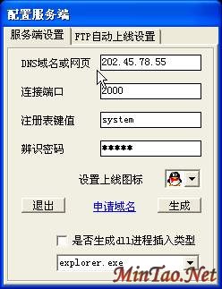 “流萤”在服务端的隐藏方式上采用了现在流行的线程插入的方法,选中“是否生成dll进程插入类型”选项后,用户可根据自己的需要,选择将生成的服务端程序进程插入到资源管理器程序explorer.exe的进程中或IE浏览器的IEXPLORE.EXE进程中实施服务端隐藏。这样不但可以轻松穿透大多数个人防火墙,而且在进程管理器中也无法查到该进程。