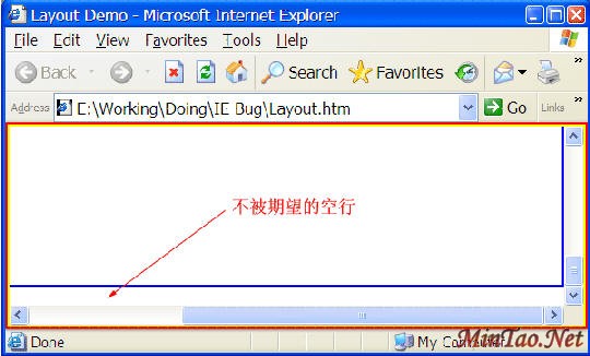 挺好的一个自制的滚动条就出来了,可是如果这时把垂直滚动条拉到底,会发现一个页面布局缺陷,原来在form后IE会默认的加上一个<br>效果显示,如下图: