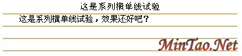 对于表格,是网页制作中的重头戏,一些图形化网页制作工具(如:Dreamweaver、Fontpage等)对它也支持的非常好,但HTML为表格设置了几十个参数,图形化网页制作工具要对它全面支持就有点免为其难了。由于参数太多,且大部分参数大家也比较熟悉,就不在这里一一介绍了,下面的例子中仅对一些关键性参数作详细介绍。 一、作系列横单线