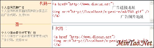 SupeSite是一套拥有独立的内容管理(CMS)功能的社区门户系统,它集成了Web2.0社区个人门户系统X-Space,这样大大增加了门户的聚合能力。SupeSite实现了对站内论坛(Discuz!)、个人空间(X-Space)信息内容的聚合。任何站长,都可以通过SupeSite轻松构建一个面向Web2.0的社区门户。 对网站管理员来说,利用SupeSite搭建的门户是免维护、低成本的门户,这是体现Web2.0的一些标志,用户在论坛上所发表的帖子以及发表的博客都可以聚合到网站上,管理员不需要付出额外的劳动,不需要编辑,也不需要采编人员,就可以额外使网站访问量倍增,获取广告的机会。因此,站长们只要学会充分利用好这个流量,让流量为创造财富噢! 一、初级篇:“傻瓜”式投放广告 用SupeSite搭建起来的站点平台上都能看到许多的广告位,这是开发者给我们站长预留的,这确实是一种非常人性化设计。现在就是等着广告提供商了。 这里以投放Discuz!广告为例,各位朋友可以使用本人提供的图片和代码进行测试,当你测试OK后再将广告的图片和链接替换掉即可。 点击下载代码 (一)如何在个人空间投放广告? 1.登录SupeSite后台,点击[系统设置]——个人空间页面广告,然后分别投放760×100的个人空间页脚广告和212×220的文件页面广告。 2.如图一所示,将“初、中级测试代码”中的代码一、代码二分别复制到相应的方框中。