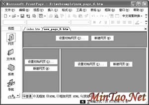 此外,还可以单击“新建网页”按钮,此时FrontPage XP会自动在该框架中创建一个新的空白网页,这个新网页会被自动设成初始网页,读者朋友可以结合以前介绍的相关知识对框架空白网页进行设计。