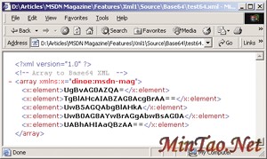 图八中代码演示了把一个string数据转换为Base64 编码的XML流。图九是输出的结果。