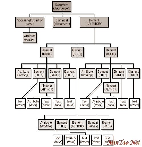 DOM 会将XML 文件的节点建构成树状的阶层结构,反映出XML 文件本身的阶层结构。DOM将会建立一个单一文件节点来表示整个XML 文件,并将其视为阶层结构的根节点。注意,XML元素的逻辑阶层结构,包含了整个XML 文件,结构中的根节点,只是DOM 节点的阶层结构的一个分枝。