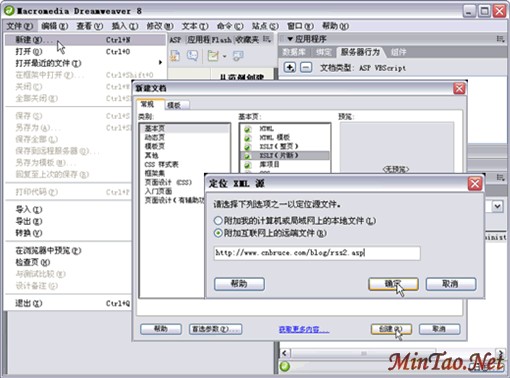 所需要的前提是:Dreamweaver 8软件,XSL片断文件,远程XML数据地址以及动态网页文档。