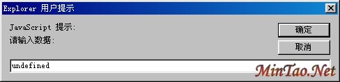 一、窗口及输入输出请看下面例子:<HTML><Head><script languaga="JavaScript">Var test=window.prompt("请输入数据:");document.write(test+"JavaScript输入输出的例子");</script></Head></HTML> 其中window.prompt()就是一个窗口对象的方法,其基本作用是,当装入Web页面时在屏幕上显示一个具有“确定”和“取消”的对话框,让你输出数据。document.writle是一个文档对象的方法,它的基本功能,是实现Web页面的输出显示。见图1所示。