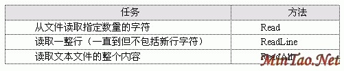 要从文本文件读取数据,则使用 Read、ReadLine 或 ReadAll 方法。下表描述了不同的任务应使用哪种方法。