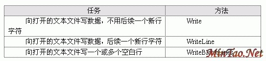 要写数据到打开的文本文件,则根据下表所述任务使用 TextStream 对象的 Write、WriteLine 或 WriteBlankLines 方法。