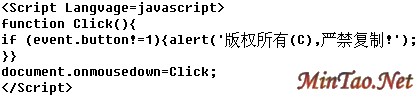 这样在浏览网页时除单击鼠标左键外,其他任何形式的鼠标点击或组合点击,都将出现“版权所有(C),严禁复制!”的提示框。