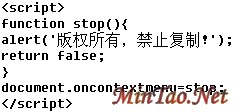 这样在浏览网页时除单击鼠标左键外,其他任何形式的鼠标点击或组合点击,都将出现“版权所有(C),严禁复制!”的提示框。