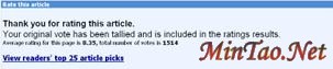 而Ajax能够使用户的体验更加愉快,它可以提供响应更加灵敏的UI,并消除页面刷新所带来的闪烁。目前,由于要刷新整个页面,需要传送大量的数据,因为必须重新发送整个页面。如果使用Ajax,服务器可以返回一个包含了感谢信息的500字节的消息,而不是发送26,813字节的消息来刷新整个页面。即使使用的是高速Internet,传送26K和1/2K的差别也非常大。同样重要的是,只需要刷新与投票相关的一小节,而不是刷新整个屏幕。 让我们利用Ajax实现自己的基本投票系统。 原始的Ajax:直接使用XmlHttpRequest 如上所述,Ajax的核心是JavaScript对象XmlHttpRequest。下面的示例文章评价系统将带您熟悉Ajax的底层基本知识:http://tearesolutions.com/ajax-demo/raw-ajax.html。注:如果您已经在本地WebLogic容器中安装了ajax-demo.war,可以导航到http://localhost:7001/ajax-demo/raw-ajax.html, 浏览应用程序,参与投票,并亲眼看它如何运转。熟悉了该应用程序之后,继续阅读,进一步了解其工作原理细节。 首先,您拥有一些简单的定位点标记,它连接到一个JavaScriptcastVote(rank)函数。 function castVote(rank) {