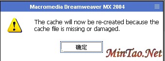 如果你也看到这个警告框,不用怕,因为你在旧版的DW上定义了站点,它要重新创建cache