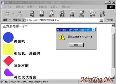 正方形是哪一个。下面给出图形。单击图形,会告诉你答案是否正确。