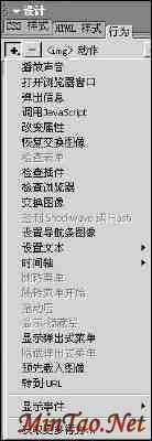 2.选中图片,单击行为标签,在此面板中,点击“增加事件”按钮,出现下拉菜单,如图1所示。