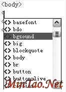 用Dreamweaver打开需要添加背景音乐的页面,点击“代码”打开代码编辑视图,在〈 body〉〈 /body〉之间输入“〈 ”在弹出的代码提示框中选择bgsound(图1)。