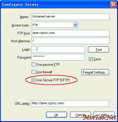 我们一般在做FTP文件传送的时候,默认情况下传送过程是公开的,即我们FTP的用户名和密码都是可见的。这样在网络上传输缺乏安全性, Dreamweaver MX 2004 的FTP功能对此作了修改,增加了SFTP传送功能,即上传下载站点文件时可以有效保护FTP用户名、密码,保障网络传输的安全性。如图8