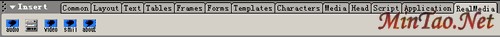 只需安装一个Real Networks专门为Dreamweaver开发的Real Media插件即可。安装插件前首先一定要安装Macromedia Extension Manager。其最新版本为1.5,可以在Macromedia网站上免费下载得到。Real Media的插件同样也可以在Macromedia网站上找到。插件下载之后,只需双击,Macromedia Extension Manager就会自动进行安装。安装后,开启Dreamweaver(这里以Dreamweaver MX为例),会发现在Instert栏目中多了一项RealMedia(图1),这个就是刚刚所安装的插件。