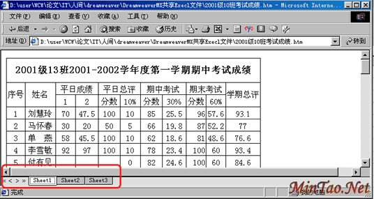 (2)XLS文件导入到Dreamweaver MX后原来的格式设置会取消;