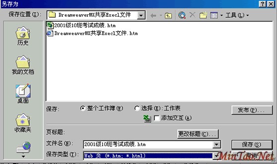 1、在Execl XP中单击“文件/另存为”,打开“另存为”对话框,如图3所示,在“保存类型”中选择“Web页(*.htm;*.html)”。