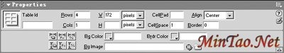 在编辑页面中,执行菜单“Insert/Table”命令插入单列表格,行数由导航栏目数目而定,并设置表格宽度为172Pixels。选取该表格,快捷键“Ctrl+F3”打开其属性窗口,更改“Border”参数为“0”、“CellSpace”参数为“1”(如图3)。设置导航标题栏背景图片为“mouseover.gif”,其他各行“Bg”背景色参数为“#CCFFFF”(淡蓝色)、背景图片为“mouseout.gif”,并输入各行导航信息(如图4)。