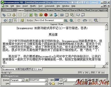 现在好了,我们要感谢Macromedia公司用户的体贴设计,让我们能够像在一般的文字处理软件中编辑排版一样,轻按空格键就能实现首行缩进。