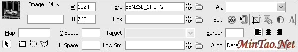 在Dreamweaver MX 2004环境中先选择一幅图片,在下边的属性对话框中就会出现内建图片编辑器(图1)。