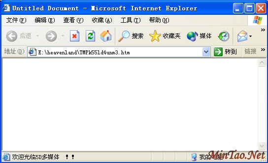 下面,我们来看一看源程序吧。<script language="JavaScript"> var msg = "欢迎光临5D多媒体 !! " ; // msg变量就是设定状态栏要出现的文字(一句话)var interval = 120 //设定间隔多少毫秒文字长度增加一个,此处是120毫秒var seq=0; //代表动态的文字长度function Scroll() { len = msg.length; window.status = msg.substring(0, seq+1);//文字的字符加一 seq++; //动态文字的长度加一if ( seq >= len ) { seq = 0; window.status = ''; window.setTimeout("Scroll();", interval ); } //如果动态文字长度和整句话相同,则动态文字的长度设为0,重新来过else window.setTimeout("Scroll();", interval ); } Scroll(); </script>