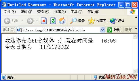 很多网友在浏览网页时应该会发现很多网页有显示时间和日期的功能,这个不难,使用可视化网页制作软件Dreameaver 可以直接插入时间和日期。但今天我们使用JavaScript来实现这个功能,同时能起到了解网络编程语言JavaScript的作用,这个实例原理就是通过JavaScript程序的执行使个人客户端机器的日期和时间在网页上显示。