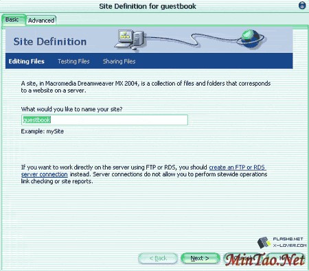 跟着新站点定义向导一步一步来定义我们的留言板站点。在站点名称上填上geustbook: