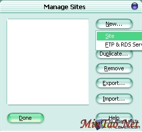 打开"Manage Site"对话框,点"New ...",在出来的下拉菜单里选"Site"定义新站点: