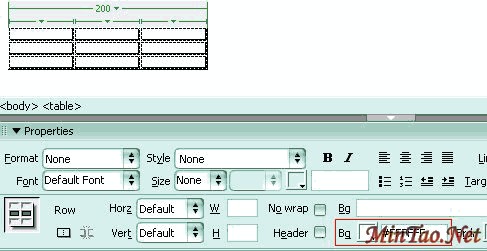 3.设置表格的CSS属性border-collapse为collapse:按Ctrl+Alt+T插入表格,对话框的设置同法2。选中表格,在属性面板中设置表格的边框颜色: