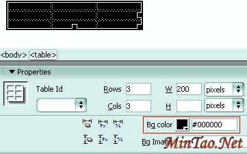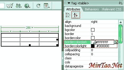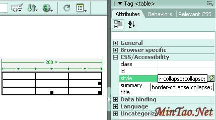 选中表格后按F9,展开"Tag Inspector"面板组,在"Attributes"面板中设置如图: