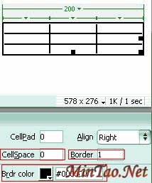 2.利用表格的暗边框(bordercolordark)和亮边框(bordercolorlight)属性做的细线表格:还是按Ctrl+Alt+T插入表格,在对话框中设置如图(带红框项为固定植,否则无效果)