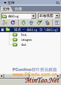 (1)先来看Doking’s BLOG网站的布局,根目录存放.aspx、.htm文件;bin目录是用于部署DreamweaverCtrls.dll控件;dat目录用于存放数据库;images目录存放有关图片文件。在打开文件面板,在“站点—dkblog”下分别新建目录bin、目录dat、目录images,结果如图2-10所示。