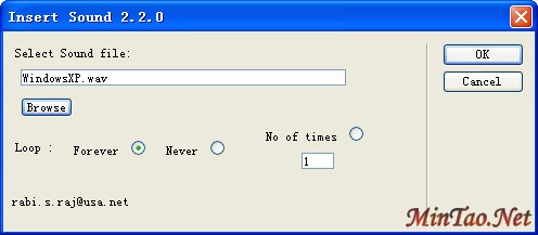 在 Dreamweaver 中插入背景音乐的几种方法 多次收到喜欢太平洋网络学院的网友的信件,信中提问如何在 Dreamweaver 中插入背景音乐,现在让我一次性向大家介绍几种背景音乐的插入方法,让更多的人去掌握它。一、直接插入法 1.打开一张需要插入背景音乐的网页,在菜单中找到这样的命令: Windows - > Behaviors,调出“Behaviors”行为面板,如下图所示(Dreamweaver MX 的面板): 2.点击“+”号按钮,选择“play sound”命令,如下图: 如果此命令呈反白色,不可用,请在此命令下拉列表中选择“Show Even For”命令,在此子菜单里选择“ IE 4.0 ”以上的版本,因为IE 4.0 以上的版本才支持此种格式的音乐插入方法。 3.此时弹出插入文件窗口,按“Browser”按钮选择音乐文件,当然是要浏览器支持的音乐文件格式(如mid、wav、AIFF、AU) 4.插入之后网页里会显示一个“plugin”插件图标,但我们还需要作进一步的调整。因为 Dreamweaver 自动插入了一段控制代码,方便我们定制激活背景音乐。但此功能不需要用到,那么就要把它删除。代码有两段,分别如下:代码一、代码二、 5.完成插入,此时的背景音乐还不能自动播放,点选插件图标,按“ctrl + F3”快捷键,调出属性面板,点击右下角的“Parameters”按钮,在弹出的窗口中进行修改,把参数“AutoStart”后面的“Value”缺省值“false”改成“true”(如下图所示),这样就达到打开页面背景音乐就响起的效果。 我们知道,音乐的播放是有时间长短的,如果希望它重复播放,可以把上图中的“Loop”参数值改成“true”。