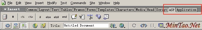还有一个很重要的地方就是工具栏了,东西很多,不过我们主要是讲后台,和我们有关的主要是ASP标签和Application标签(如图qy-3)