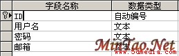 <2> 我们用ACCESS新建一数据库,保存名为“用户表”,如图(3-3)所示。指定ID为主键,同时设置它的数据类型自动编号。