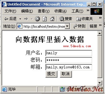 Form Elements:文本域应该全部被列在这里。必须一个一个地设置所有这此条目,包括选取表单元素,选择适应的数据列和文本框下面适当的数据类型。用户名将插入到“用户名”列中,密码将插入到“密码”列中,邮箱将插入到“邮箱”列中。刚才我们在上面定义了文本框的名字和数据库的字段名一置,所以DW MX会自动让它们对应,我们在以后应当尽量让表单名和数据库字段名一置,这是个好习惯。