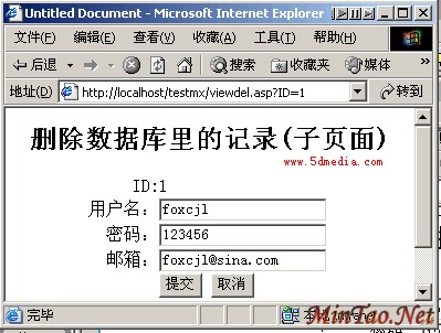 点击出现如图(5-6)所示的对话框。不难发现它和我们前一章所讲的更新数据库内容的服务器行为非常相似。